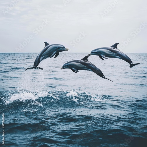 Dolphins Jumping Out of the Ocean in Clear Waters