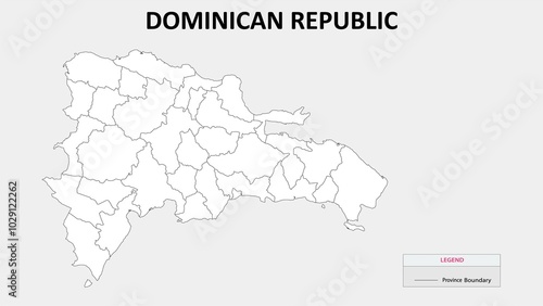 Dominican Republic Map. State map of Dominican Republic. Administrative map of Dominican Republic with states names in outline.
