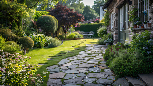 Done viwe Hard landscaping, new luxury stone patio and garden of an English home