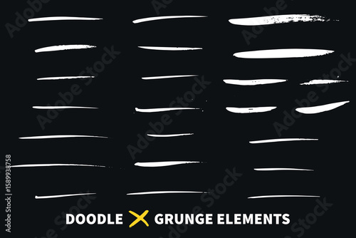Doodle & Grunge Line Elements. Set of doodle-inspired grunge lines in various thicknesses and shapes. Great for modern and urban graphic designs, collages, and backgrounds.