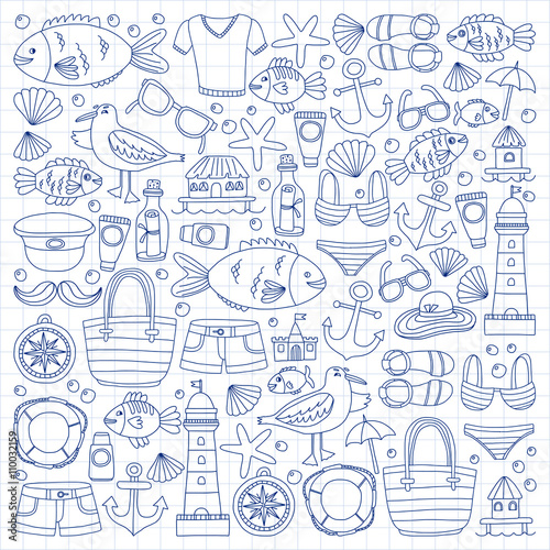 beach, banner, anchor, bag, checked, ink, capitan, cartoon, collection, doodle, drawing, fish, hat, helm, icon, children, lighthouse, linear, maldives, menu, moustache, notebook, notepad, paper, pattern, pen, crayons, poster, protection, relax, sea, seafood, seagull, set, shell, simple, starfish, summer, sun, sunglasses, sunblock, swimming, swimwear, tour, travel, umbrella, vacation, vector, line