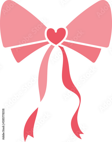 doodle bow Pink bow with heart-shaped center and flowing ribbons. in flat color style