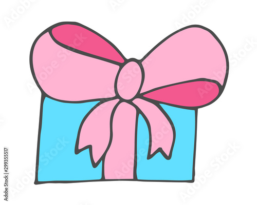 Doodle hand drawn gift box with bow. Vector romantic present.