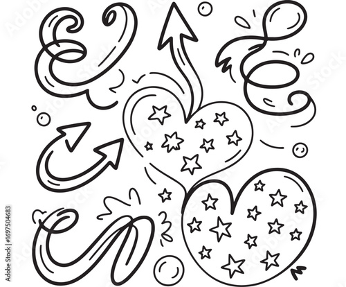 nubes, doodle, star, arrow, illustration, graphic, hand-drawn, art, cute, whimsical, romantic, love, celebration, party, festive, childish, children, children, drawing, vignetting, symbol, pattern, texture, background, wallpaper, printable, template, craft, activity, decoration, scrapbook, card, invitation, design, element, image, clip art, outline, simple, elegant, modern