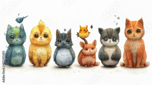 Doodle Style Cute Pets: Dog, Cat, Bird, Fish, Rabbit, Rat, Turtle Collection