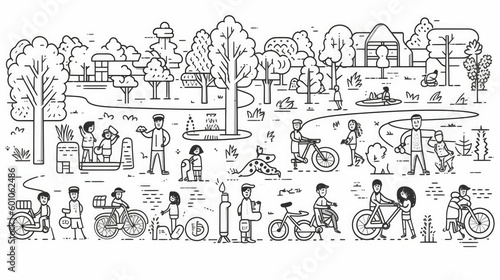 doodle, vector, illustration, people, character, various, activity, sport, game, leisure, hobby, lifestyle, fun, happy, smiling