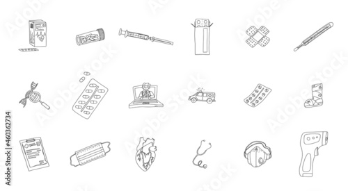 illustration, doodle, picture, medicals, medicine, drawing, element, vignetting, icon, doctor, graphic, test, stethoscope, hospital, pharmacy, biology, organ, make well, health, blood, isolated, symbol, pill, drug, science, set, education, design, health care, signs, laboratory, tube, clinic, pill, help, nubes, vaccine, syringe