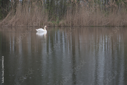 mute swan, bird, big, water, lough, calm, nature, nature, reed, wing, white, feather, beak, reflectance, springtime