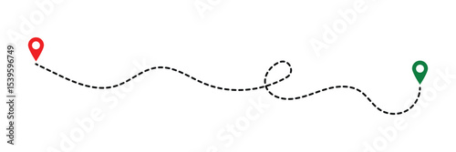 Dot line path route travel banner illustration with location map pin icon. Route location icon two pin sign and dotted line in eps 10.