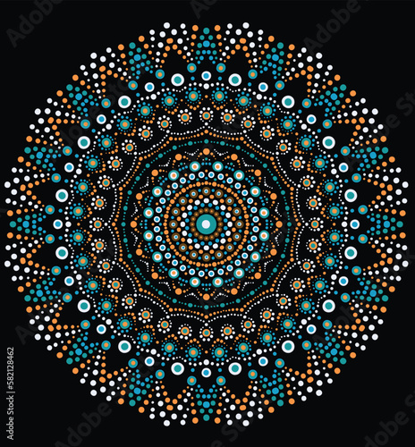 Dot mandala for acrylic painting. Spot painting point to point. Abstract design of mandala in dot paint style. Aboriginal australian ethnic round ornament.