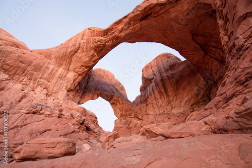 Double Arch is a pair of natural arches in Arches National Park in the southern part of Grand County, Utah, USA, and is one of the park's most famous attractions. It is located near the town of Page.