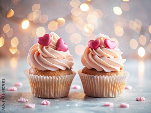 Double exposure captures romantic heart-shaped Valentine's Day cupcakes, a delicious photographic treat.