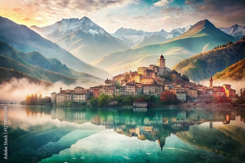 Double Exposure: Serene Barrea Lake & Picturesque Abruzzo Village