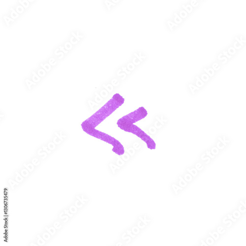 Double Left angle quote Symbol, hand-drawn marker glyph with purple color on transparent Background