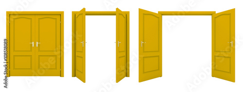 door, double, hinge, open, close, double door, yellow, white, isolated, white background, blank, cut-out, set, variation, pattern, doorway