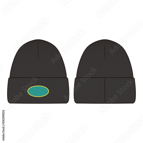Double View Black Beanie with Logo Patch Technical Drawing Set