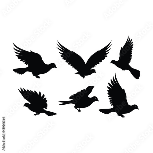 Dove Bird Set Silhouette Clipart on White Background