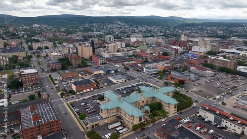 Downtown Scranton, Pennsylvania city skyline with office buildings and city streets where residents live and work known for Steamtown National Historic Site