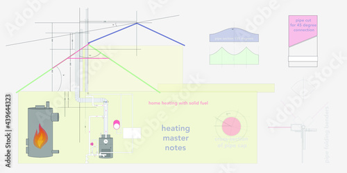 Draft drawing of a heating system with a chimney for a house, Repair Service, Remodeled, Construction