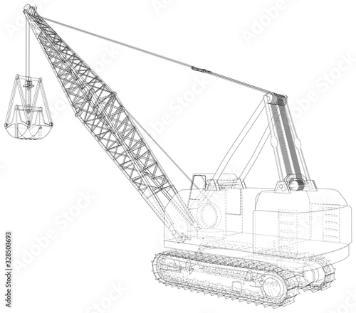 Dragline walking excavator with a ladle. Vector illustration. Vector rendering of 3d. Wire-frame style.