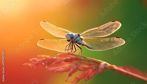 Dragonfly close-up, shimmering wings, vivid nature background, 3D illustration.