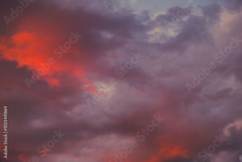 dramatic and colorful sunset clouds in summer time