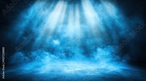stage, lighting, smoke, blue, dramatic, spotlight, fog, empty, scene, performance, dark, theatre, event, studio, photo, background, effect, visual, atmosphere, concert, show, presentation, product, display, exhibition, glowing, beam, illumination, ambient, darkroom, glare, hazy, illuminated, mystical, futuristic, modern, fantasy, abstract, background, texture, colours, design, graphic