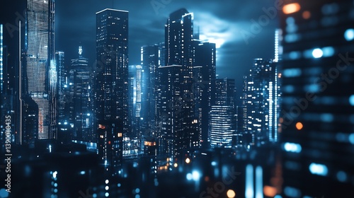 city landscape, skyline, night, urban, metropolis, skyscraper, building, modern, architecture, illumination, light, downtown, dark, twilight, evening, dusk, waterfront, water, reflections, scenic, illuminated, vibrant, structure, futuristic, business, financial, tour tourism, travel, exterior, panorama, panoramic, highrise, center, district, destination, industry
