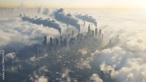 Dramatic Cityscape Enveloped in Atmospheric Haze Illustrating Urban Heat Island Effect