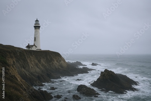 lighthouse, cliff, overcast, pacific, california, coast, ocean, sea, landscape, nature, travel, beacon, maritime, architecture, sky, water, scenic, tour tourism, coastline, shore, landmark, navigation, outdoors, horizon, rock, wave, storm, weather, seascape, tranquil, remote, environment, adventure, destination, geology, serene, powerful, atmospheric, vista