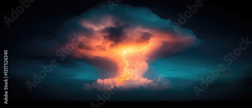 Dramatic Lightning Storm Illuminates Sky with Vivid Colors in a Powerful Cloud Formation