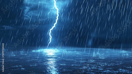 lightning, rain, storm, ocean, night, pattern, strike, powerful, darkness, intense, forecast, picture, stormy, hazard, meteorology, discharge, image, disaster, severe, thunderstorm, dramatic, oceanic, falling, warning, atmospheric, heavy, event, flash, drop, wave, phenomena, light, electrical, danger, cloud, climate, scene, weather, dark, cloudburst, blue, sky, rainfall, electric, water, nature, bright, sea