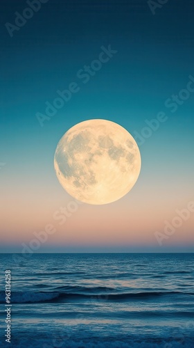 Dramatic moonrise over ocean horizon