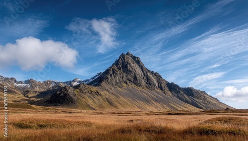 mountain, peak, sky, cloud, landscape, iceland, nature, dramatic, scenic, vista, high, elevation, summit, volcanic, rocky, plain, autumn, colours, gold, brown, green, blue, white, wind, streak, light, shadow, travel, exploration, adventure, beauty, freedom, peace, serenity, wild, untamed, huge, open, horizon, cliff, peak, grass, field, panorama, photo, view