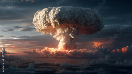 Dramatic Nuclear Mushroom Cloud Explosion in Stormy Sky: A Powerful and Ominous Atmosphere