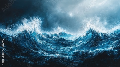 Dramatic Ocean Waves Under Stormy Sky with Dark Clouds and Turbulent Waters