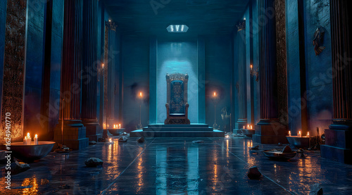 Dramatic Palace Interior with Central Throne – Generative AI