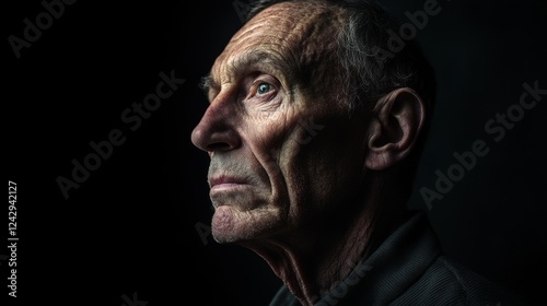 dramatic, portrait, psychological, depth, natural, pose, showing, distress, deep, shadow, minimalist, black, background, rim, light, technique, contemporary, documentary, photo