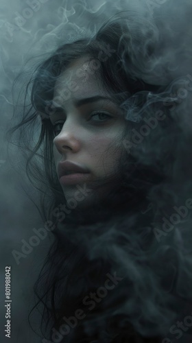 portrait, smoke, abstract, person, obscured, swirling, dramatic, mysterious, monochrome, face, hidden, artistic, moody, dark, emotional, expression, art, conceptual, aethereal