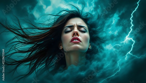 female, woman, portrait, cloud, lightning, mystical, storm, dramatic, surreal, beauty, emotional, power, dark, mystery, aethereal, expression, artistic, stormy, fantasy, moody, intense, hair, fog, smoke, shadow, electricity, atmospheric, dreamy, abstract, magical, nature, energy, weather, storm cloud, striking, imagination, face, creativity