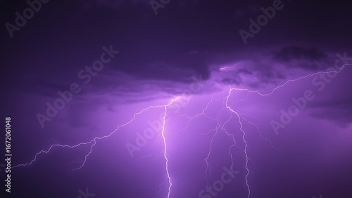 Dramatic purple lightning illuminating a stormy night sky, capturing raw natural energy.