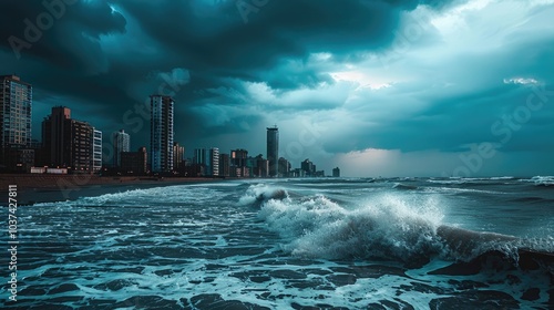 ocean, wave, cloud, city, skyline, storm, water, beach, dusk, evening, landscape, architecture, seascape, nature, weather, calmness, light, shadow, horizon, travel, tour tourism, adventure, serenity, atmospheric, calm, dramatic, moody, blue, dark, summer, coastline, scenic, view, environment, beautiful, peaceful, sky, impressive, vibrant, powerful, awe, movement, dynamic
