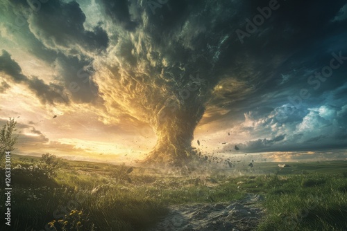 explosion, sky, landscape, sunset, cloud, nature, dramatic, colourful, dust, green, environment, weather, scenery, force, energy, earth, horizon, sunlight, calmness, chaos, power, beauty, disturbance, atmospheric, tree, field, light, evening, colours, scenic, view, rural, devastation, tension, motion, contrast, land, pattern, fleeting, moment, visual, impact, awe, shock, wonder, expansive, element, natural, phenomena