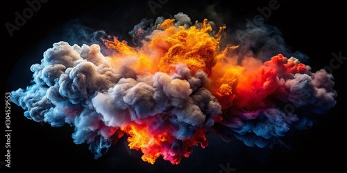 smoke, explosion, black background, dark, fire, dramatic, powerful, energy, blast, impact, chaos, destruction, abstract, texture, art, design, photo, background, illustration, visual, graphic, image, element, scene, effect, motion, movement, power, intensity, force, night, darkness, fog, cloud, dust, ash, vapour, steam, gas, haze, mist, atmosphere, ambient, lighting, contrast, composition