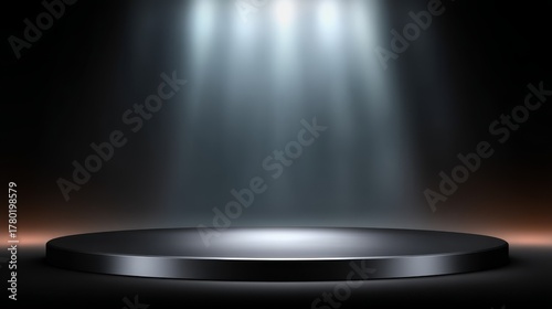 Dramatic spotlight illumination on dark stage background for theatrical events and artistic photography focus.