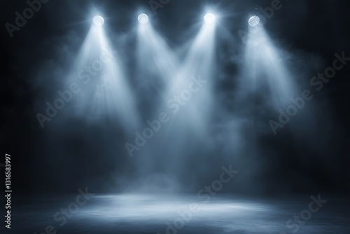 Dramatic Stage Lighting Background Three Spotlights on Smoky Dark Floor