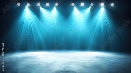 stage, lighting, spotlight, blue, background, empty, dramatic, light, beam, scene, studio, performance, show, concert, theatre, event, illustration, digital artwork, abstract, dark, bright, ray, beam of light, illumination, blue light, background image, blue background, modern, clean, minimalist, texture, floor, surface, power, energy, sharpened