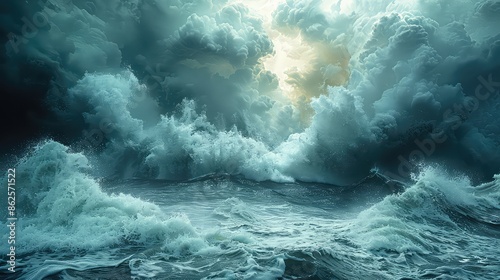 Dramatic stormy ocean waves natural background