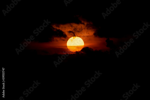 Dramatic Sun rise with clouds surrounded shot at beach