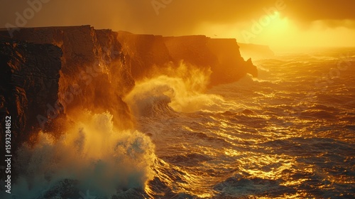 sunset, ocean, wave, storm, cliff, coast, dramatic, gold, powerful, nature, landscape, sunrise, beach, cliff, stormy, wild, horizon, travel, beautiful, view, sea, rock